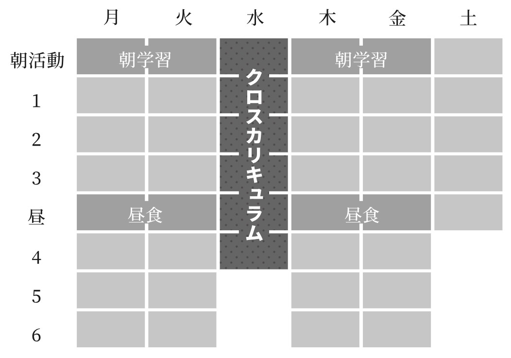自律をうながす時間割として、毎週水曜日は1日かけて生徒たちが探究する時間です。水曜日を中心にして実施していく教科横断型学習では、複数の教科の教師が協力し、生徒と共に社会や地域の問題を考察します。生徒は、教科学習を通じて実際の社会問題に取り組むプロジェクトを創造し、学びと社会をつなげる経験を得ます。ここでは、教科学習が単なる知識の習得から、実社会での課題解決へとつながる重要な手段となります。教育においては、ソシアリティー(社会性)が求められる時代において、広い視野で学ぶことが必要です。