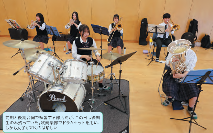三鷹は戦前の府立中からの歴史を持つナンバースクールではないが、文武両道の精神は開校時から不変だ。前期後期ともに活動する部活の豊富さにおいて、首都圏の公立校の中で群を抜くだろう。サッカーでは強豪校として知られ、07年には全国高校選手権に初出場し、4回戦まで駒を進めた。都立高初のベスト8進出は今なお語り草になっている。14年にも後期サッカー部は都予選を勝ち抜き、全国進出を果たした。文化部では鉄道研究に実績があり、23年も全国高等学校鉄道模型コンテストでモジュール部門奨励賞を受賞。新装相成った飯田橋駅周辺の風景を、地上のJR中央線から地下深いメトロ南北線まで忠実に再現した、この力作はコンテストのサイトでも見られる。同好会ではUNIX研究会も、4Kモニターと画像・ビデオ編集ソフト搭載のハイスペックPCを筆頭に、3Dを含めた各種スキャナーや3Dプリンターなど、最新のツールが揃った「STEAMラボ」を駆使できるのは魅力だ。そして、最近好調なのが吹奏楽部だ。全日本ブラスシンフォニーコンクールで後期が24年は全国最優秀賞、今年度は優良賞を受賞。中高一貫校の高校部門での最優秀賞獲得は極めて稀という。同部の部長を務めるのが前出の大島莉月さんだった。