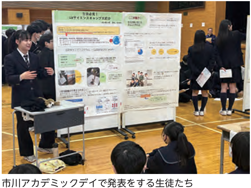学校では、年度初めに生徒たちの活動報告を冊子にまとめて配布していますが、生徒たちにとって刺激になっているのが、さまざまな課外活動の集大成として年度末に行われる「市川アカデミックデイ」です。発表者は手挙げ方式で、それぞれが思い思いのスタイルで、自由に1年間の活動をプレゼンします。また、こうした先輩の活動に刺激を受けた後輩たちが、次年度には何らかのチャレンジしていく好循環が起きているのです。