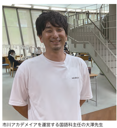 取材時には、高校2年生の現代国語の授業が行われていましたが、生徒たちは書架から読みたい本を探して、思い思いの場所で自由に読書をしていました。この後担当教員との対話やエッセイ執筆などが続くそうですが、この授業を行っていたのは、「市川アカデメイア」で哲学対話も担当されている国語科主任の大澤先生。