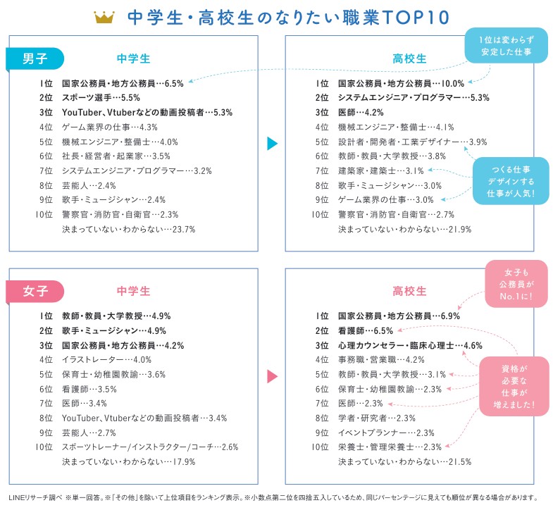 エンジニア、大学教授、プロスポーツ選手、ユーチューバー、看護師、会社員…etc。自分は将来、自分が何歳になったときにどんな仕事をしていたいか、どんな暮らしをしていたいかを具体的に想像してみましょう。それに合わせて、必要な資格やスキル、経験などを調べてみましょう。また自己分析となりたい自分の方向性に隔たりがある場合には、修正していく努力をすればいいのです。