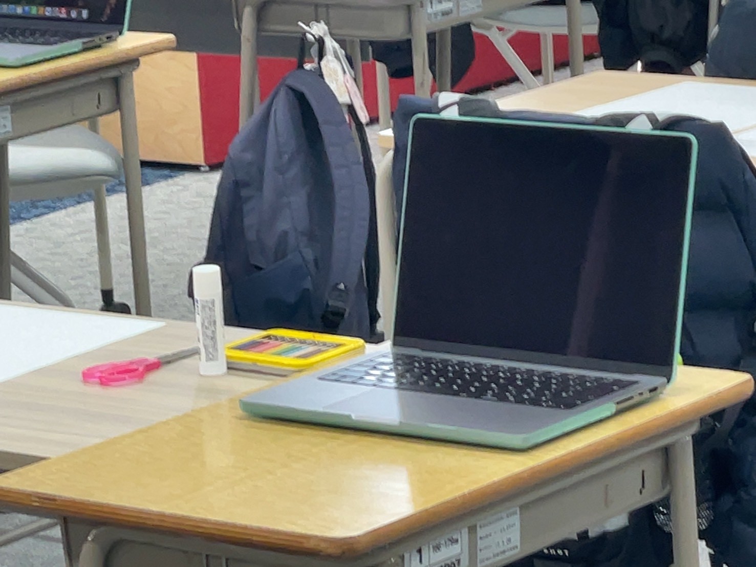 試験①は、個人課題に取り組む試験会場です。机の上にはMacBook Proをはじめ、色鉛筆やはさみ、のりなど、アイデアを自由に表現するためのツールが用意されています。着席した受験生たちは、少し緊張した面持ちで説明に耳を傾けながら、次第に表情を引き締め、課題と向き合っていきました。