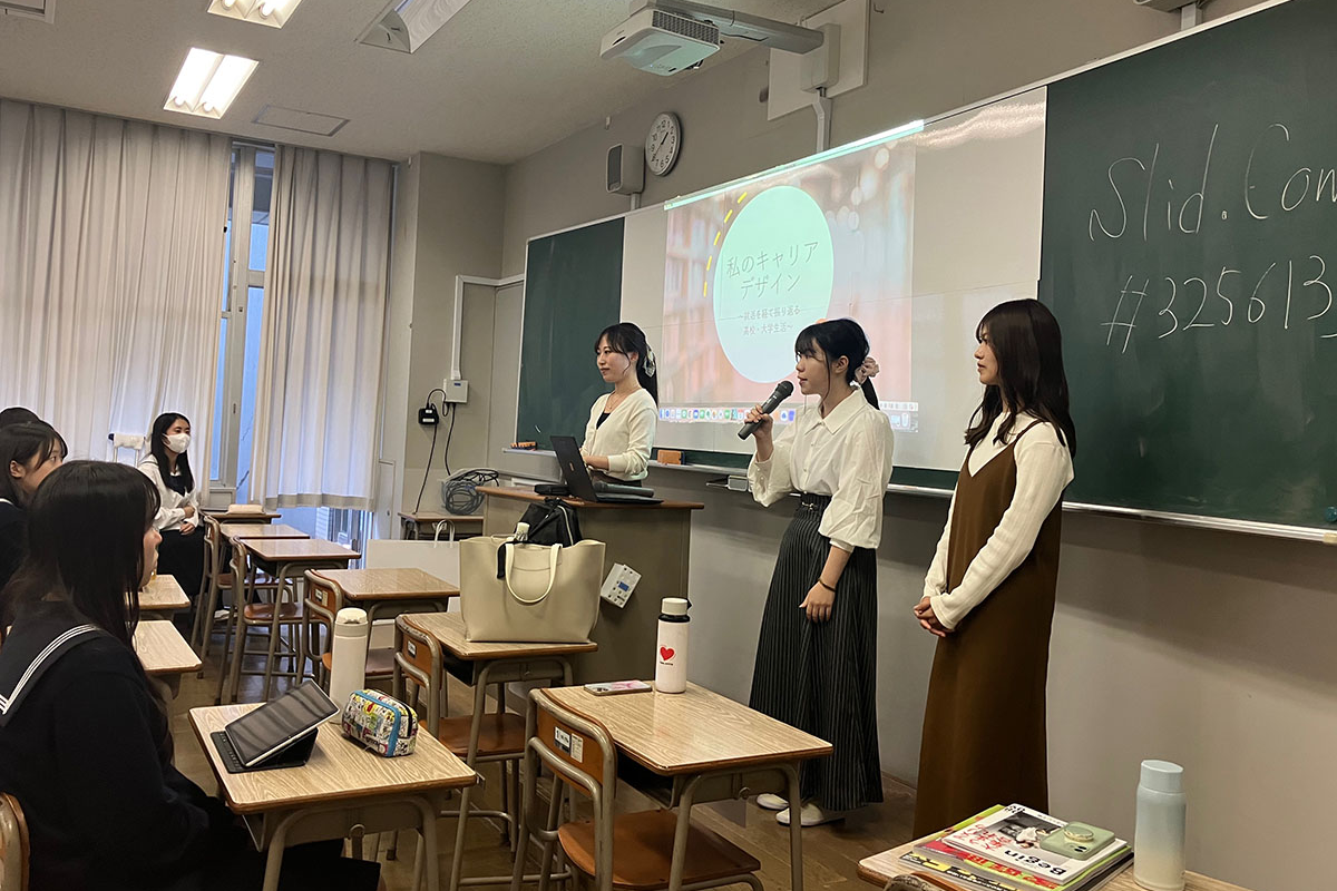 「大学の先生だけでなく、学生のみなさんに授業を行ってもらうこともあります。実際に年齢の近い大学生の活動を聞くことで、生徒たちも具体的にイメージを持てるんです」と西村先生。