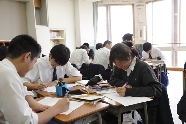 "人づくり"のベースとなる学力をつける上で、中2からは成績上位者を集めた「ベストクラス(通称)」を設置(高1までは6クラス中、1クラス)。勉強に気持ちが向いたら、いつでも「ベストクラス」を目指すことができるよう、毎年クラス替えを実施しています。高2以降はクラス替えを行わず、文系・理系に分かれて受験体制に入るため、「ベストクラス」(文系1組・理系6組)の位置づけも、難関大学合格を目指すクラスとなります。宮前先生は、高2から文系1組の担任として、この学年に関わってきました。