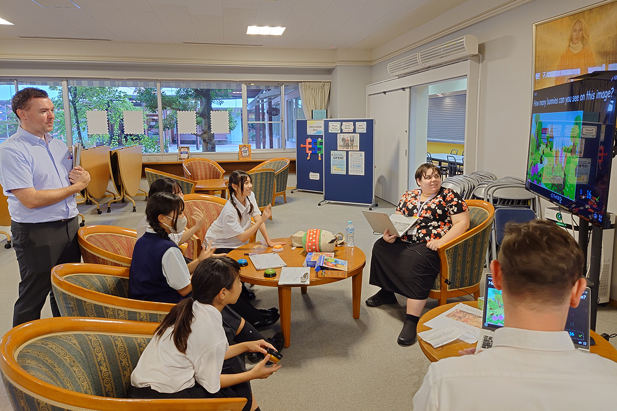 ・ネイティブ教員3人が常駐するグローバルラウンジ(月〜金曜の昼休みと放課後に開放)を設置。